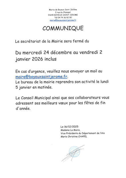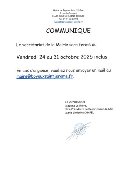 mairie assure l'accueil téléphonique le lundi, le mardi, le jeudi et le vendredi de 9h00 à 12h00. Pour d'autres créneaux merci de prendre rendez-vous par téléphone.