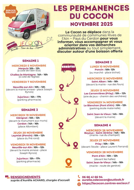 Centre d'accueil social une fois par mois sur notre commune. Pour vous aider dans vos démarches sociales, administratives, ou autres ...